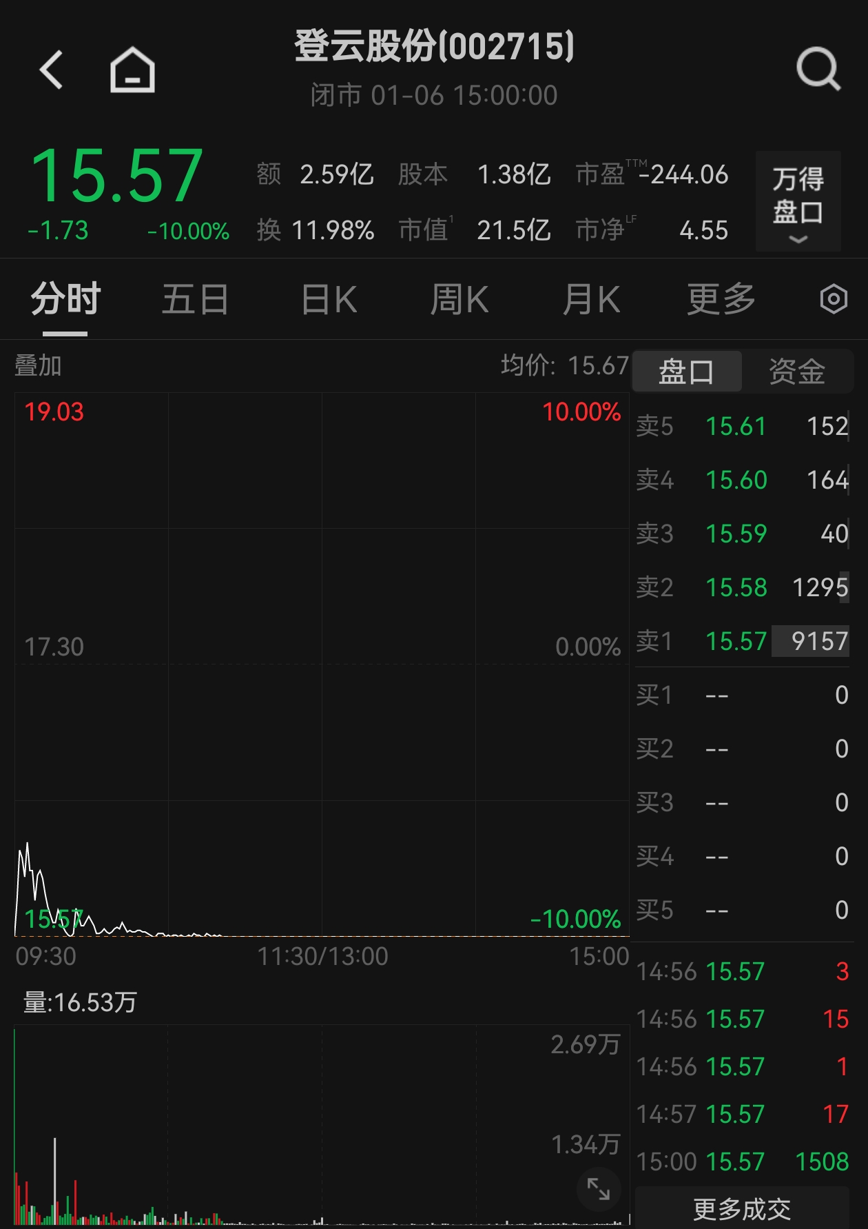 2026年1月6日,上证指数突破十年新高,市场沉浸在一片乐观气氛中,但登云股份(002715.SZ)却成为当天A股市场唯一非ST跌停的股票,收盘价大幅下跌。