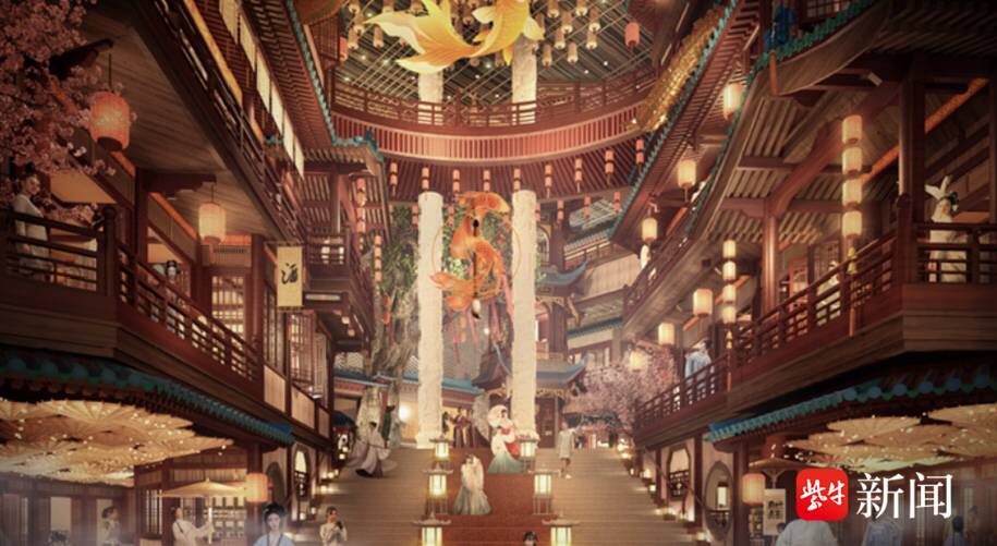 如今,走进这里,画风已然大变。熟悉的建筑外壳下,是朱红的立柱、青绿的枋画、精巧的仿古屋檐。入口处是气势恢宏的重檐庑殿顶,室内则“藏”着一条条仿古街巷。项目负责人介绍,这里没有大拆大建,而是修旧如旧,用现代安全的材料“复刻明朝的风骨”,旨在打造一个“沉浸式大明文化空间”。