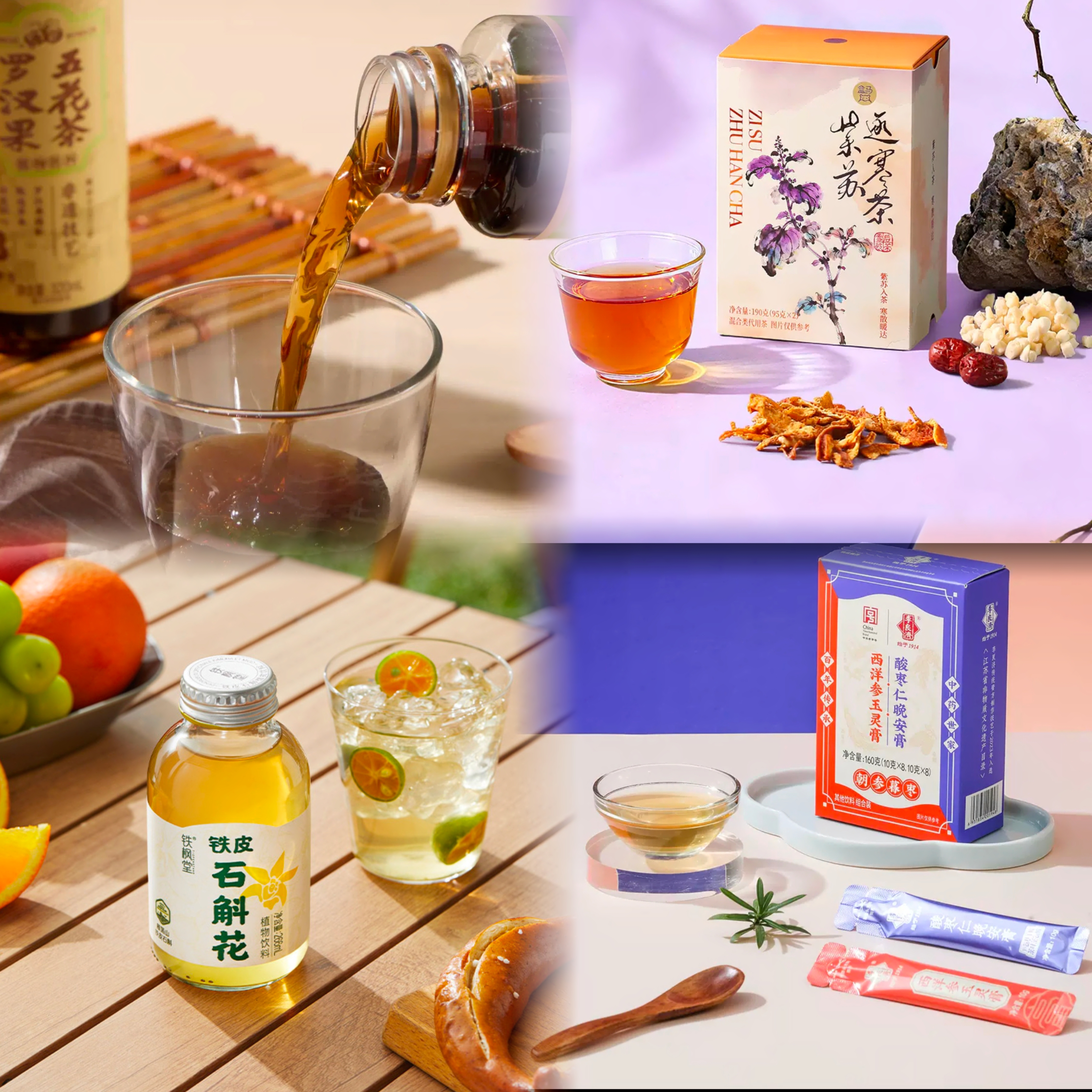 在南京河西一家盒马鲜生记者看到,标记“药食同源”的食品有很多,比如黄精黑芝麻六黑粉,是很多年轻人喜欢的养生速食冲泡早餐;老字号李良济把养生膏方变成了可以随身携带的小膏条,灵芝酸枣仁睡前膏、化橘红秋梨金润膏、西洋参玉灵膏等等都让年轻人可以随时随地养生一下;跟老字号联名的罗汉果五花茶开胃解腻,紫苏逐寒茶也非常应季;在大润发M会员店,记者看到这里的药食同源养生食品也不少,铁皮石斛花饮料配料表里清一色的养生食材;陈皮南酸枣粒也是兼顾了口味和养生功效……