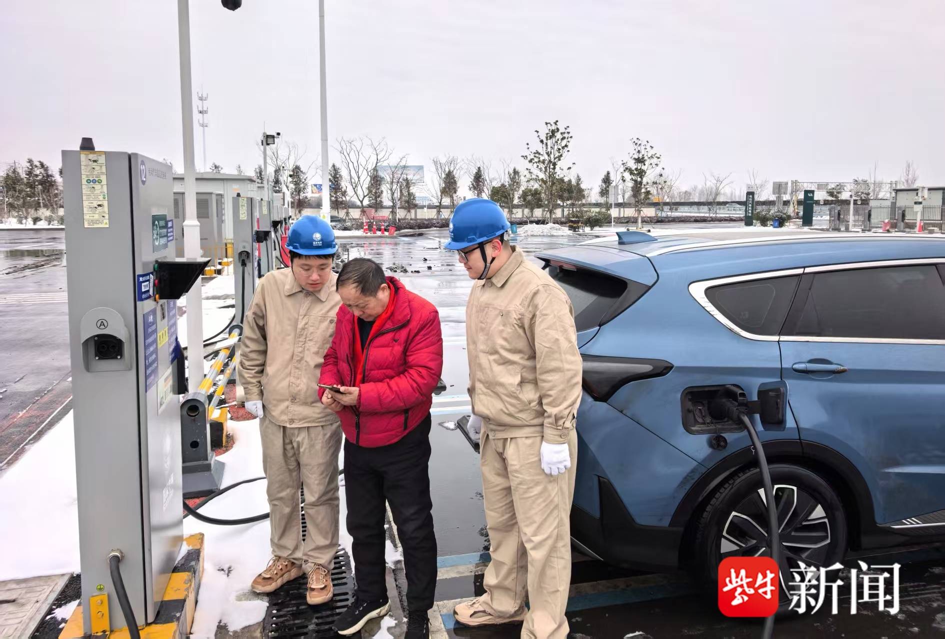 贴近民生的优质服务在风雪中持续“在线”。1月20日,在G2京沪高速扬州高邮服务区,国网扬州供电公司充电服务运维人员顾春飞冒着风雪穿梭于充电桩之间,有序引导车辆、检查充电设备,全力保障现场充电秩序与设备安全。本轮雨雪天气期间,国网江苏电力累计派出800人次运维力量,同时依托全省高速服务区高密度充电网络与智慧车联网平台赋能,保障1336台高速充电桩稳定运行,设备完好率持续维持99%以上,确保群众绿色跨城出行能源补给畅通无阻。