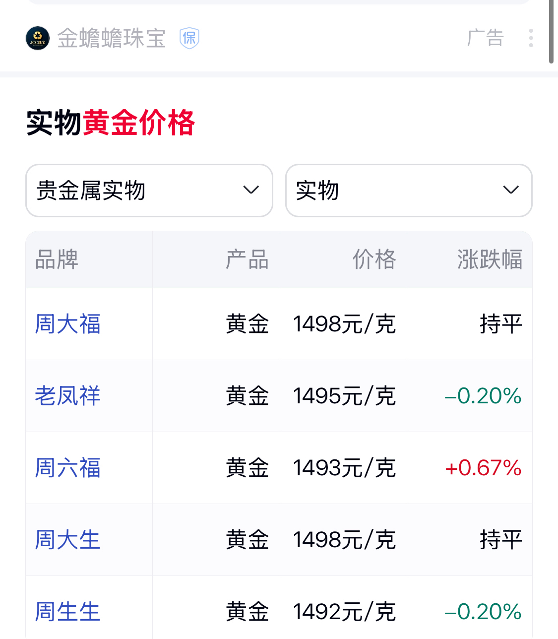 今日金价。