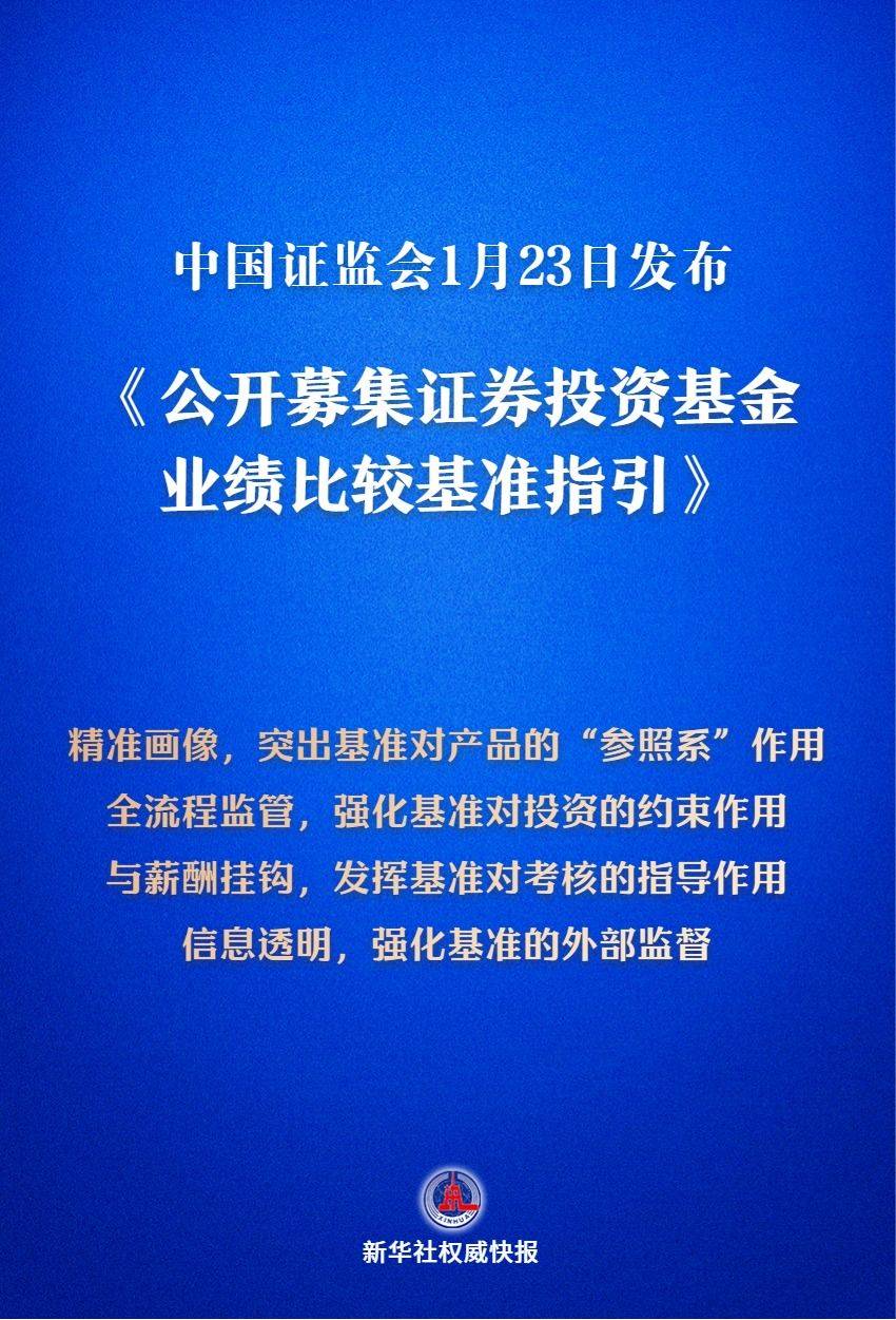 1月23日,中国证监会发布《公开募集证券投资基金业绩比较基准指引》。中国基金业协会同步发布《公开募集证券投资基金业绩比较基准操作细则》。