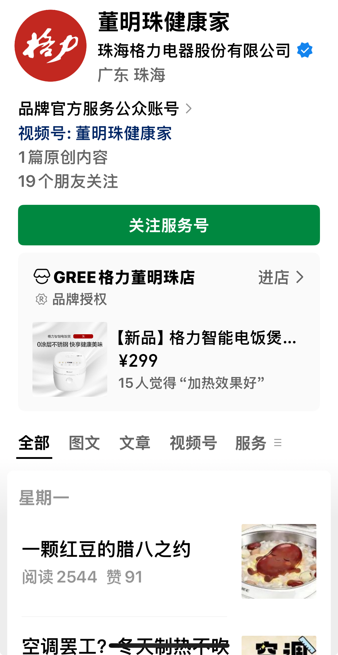 董明珠健康家公众号依旧在线。