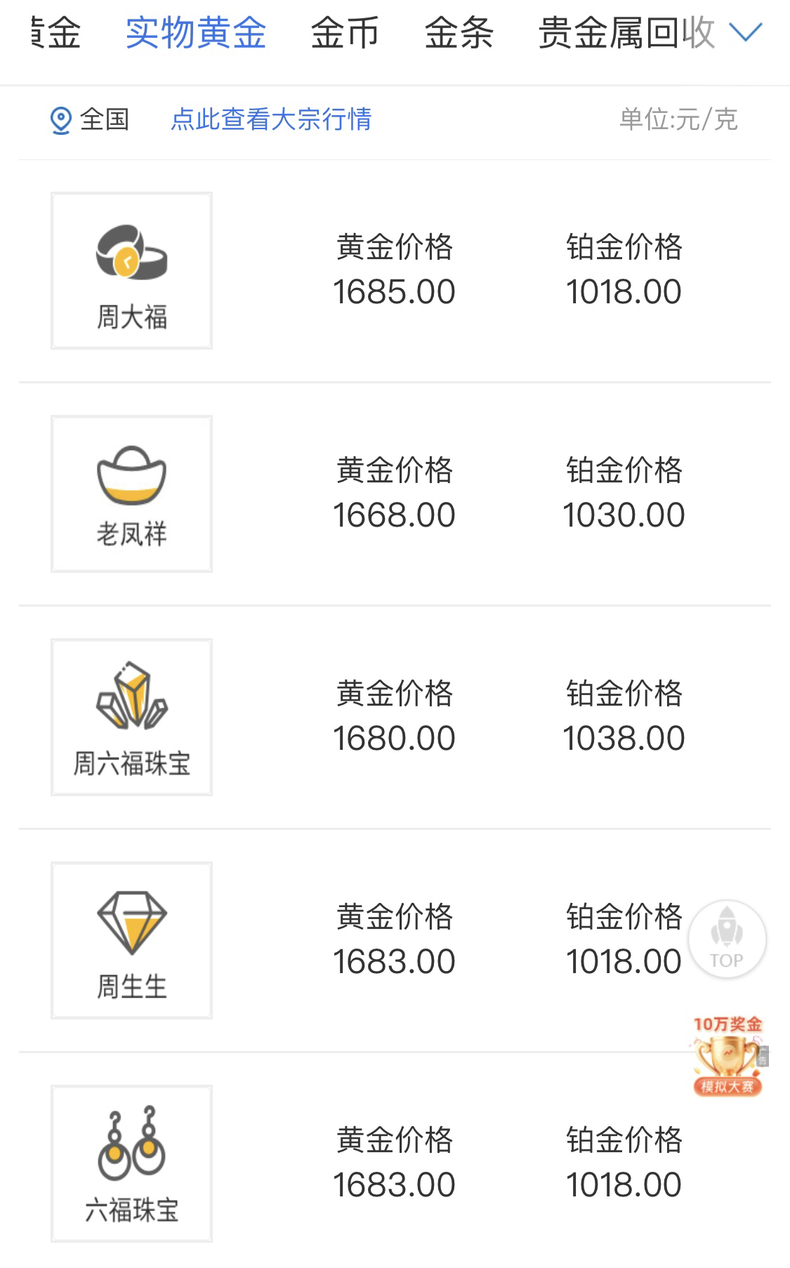 30日品牌首饰金报价。