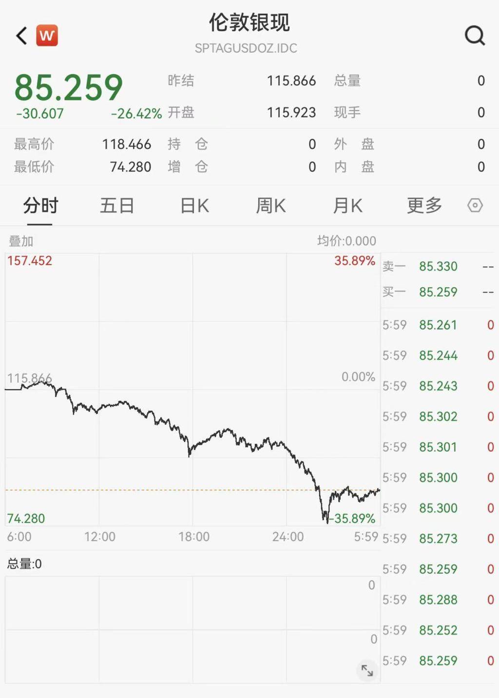 40年最大单日跌幅!现货黄金价格跳水超10%,白银一度暴跌近36%
