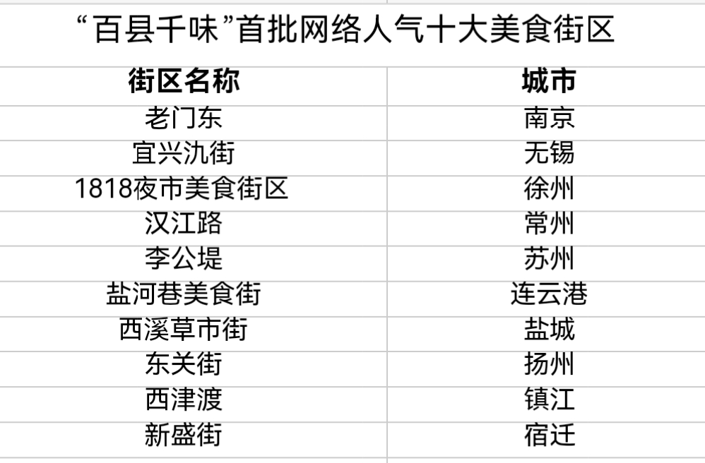现场揭晓了“百县千味”首批网络人气十大美食街区,包括”百县千味”首批网络人气十大美食街区——南京老门东、宜兴氿街、徐州1818夜市美食街区、常州汉江路、苏州李公堤、连云港盐河巷美食街、盐城西溪草市街、扬州东关街、镇江西津渡、宿迁新盛街。这些街区浓缩了江苏十三地市的风味精髓,既有老字号的坚守传承,也有新风味的创新惊喜,是立体鲜活的江苏城市美食名片。