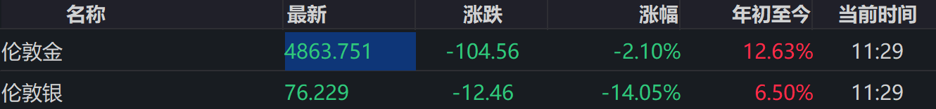 现货黄金报4863.751美元/盎司,跌幅超2%。