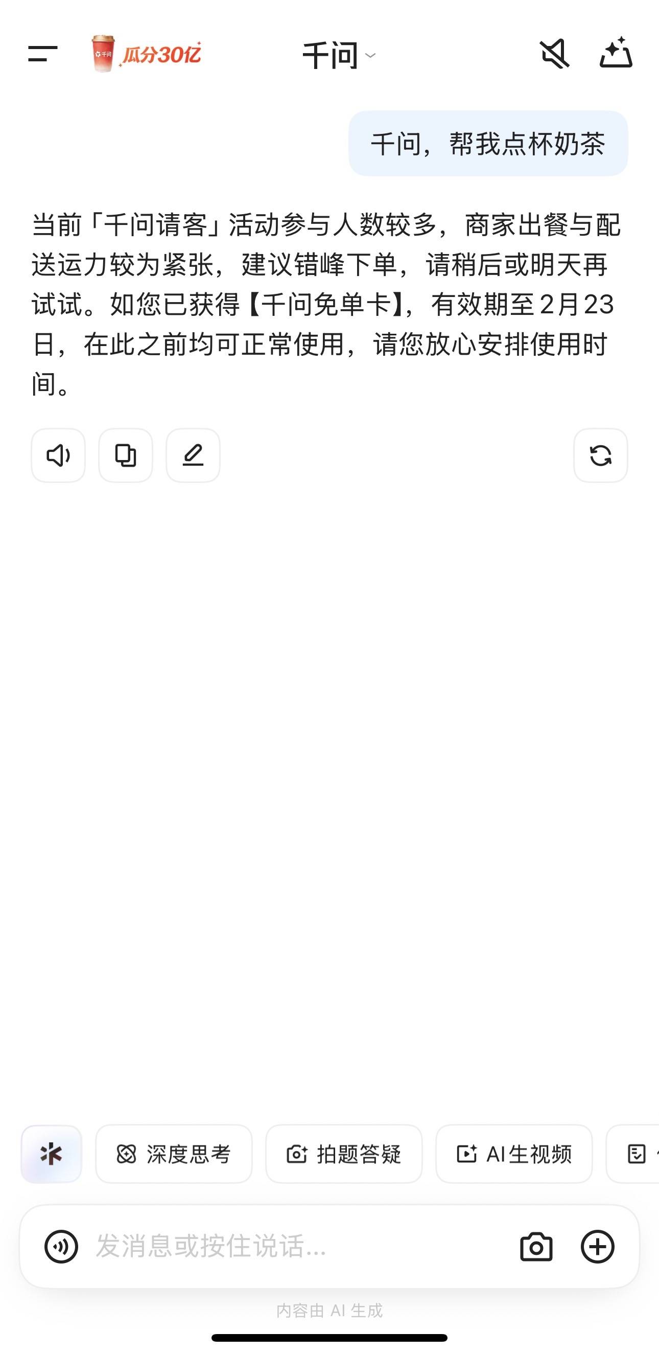 快讯|免单活动太火爆,千问APP建议:明天再试