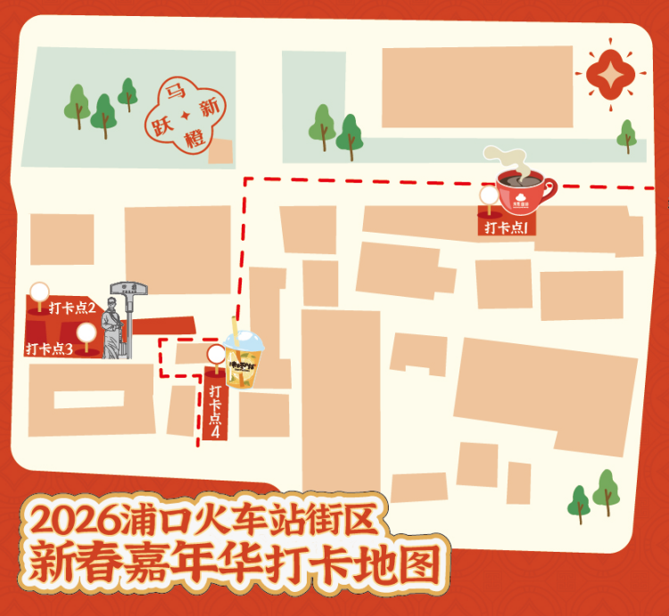 浦口火车站街区内还精心布置了多个打卡点位,每一处都承载着独特的故事感与浓浓年味,随手一拍皆是氛围大片。
