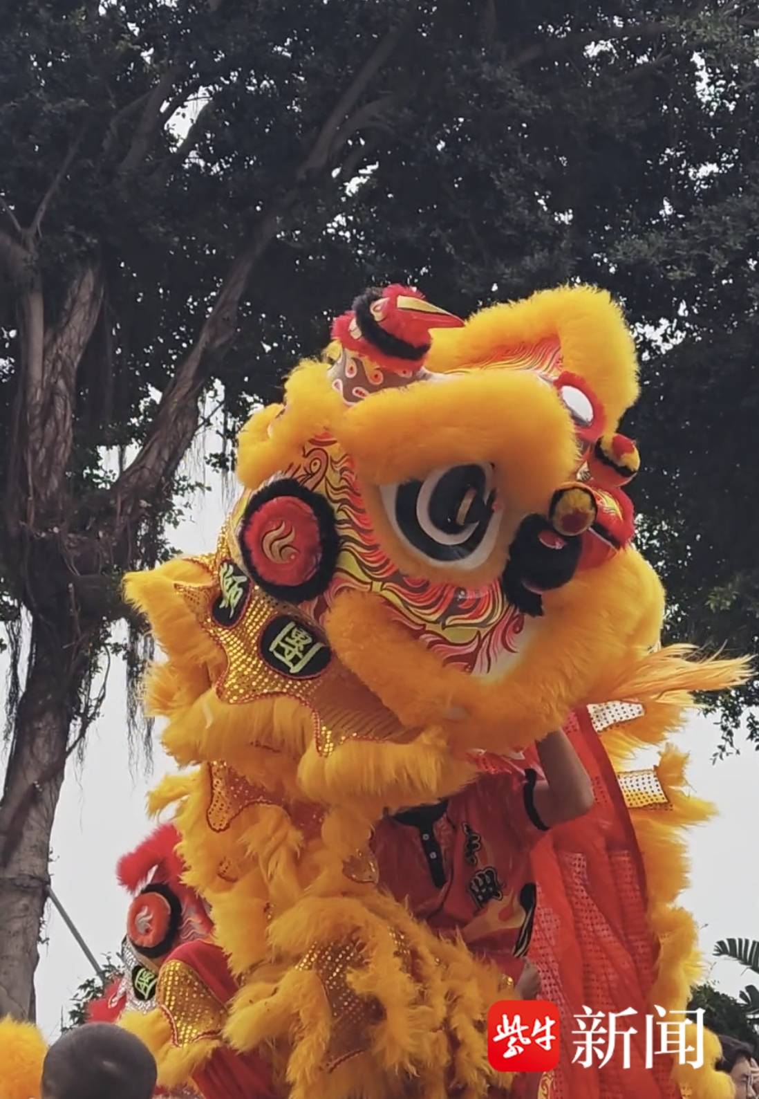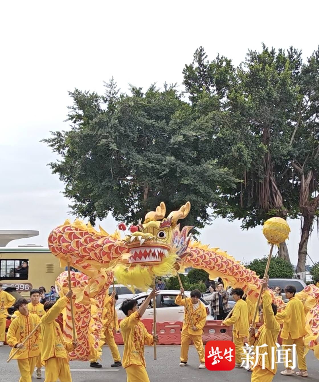 金龙穿梭、雄狮跳跃,配合铿锵的鼓点,寓意新的一年吉祥如意、风调雨顺,每一个动作都引来阵阵欢呼,将喜庆氛围拉满。