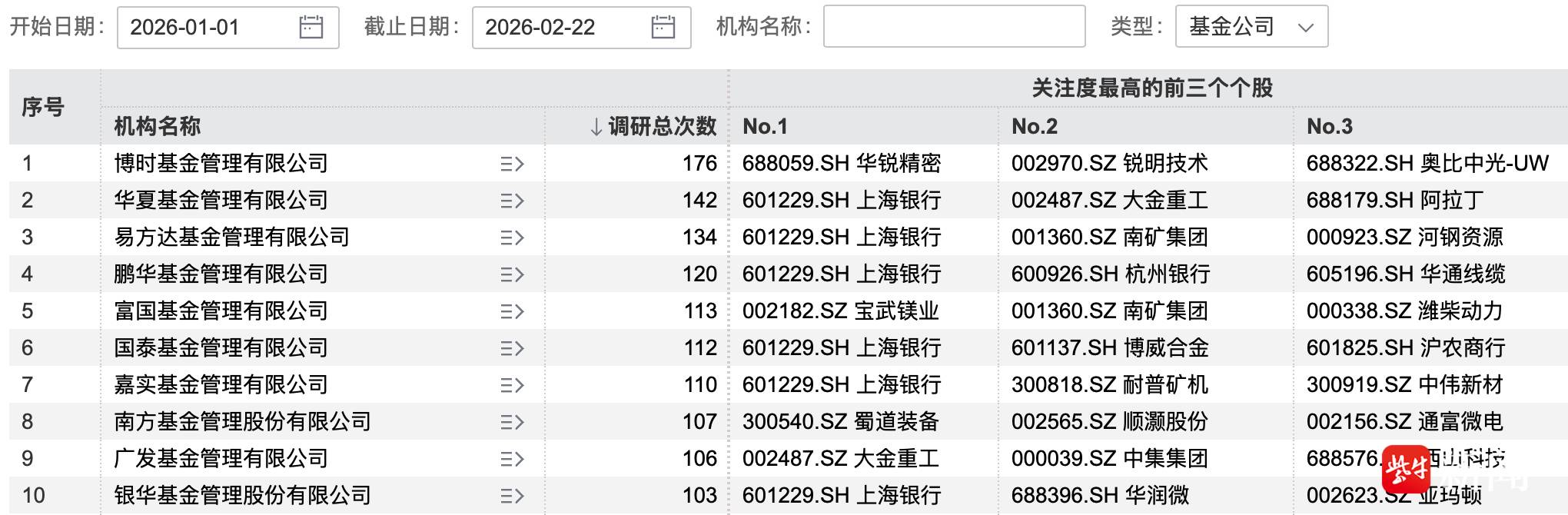 据统计,今年以来(截至2月22日),846家上市公司披露机构投资者调研记录。其中,大金重工获机构调研家数最多,达318家。