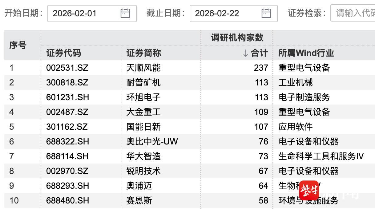 从2月情况来看,天顺风能获237家机构调研,是2月以来接受机构调研家数最多的上市公司。