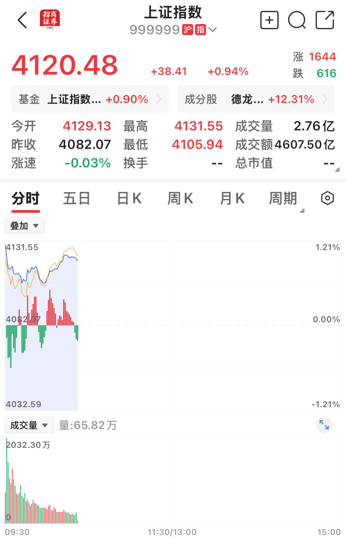 截至发稿时,上证指数上涨0.94%。