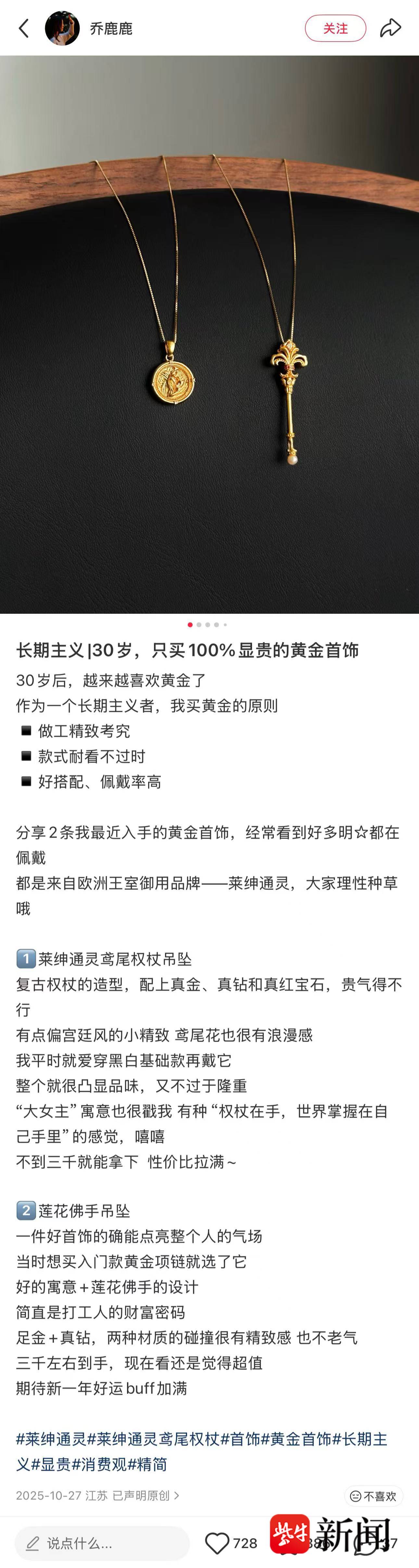当前黄金消费正在经历一场“从大宗商品向硬通货奢侈品”的基因突变。传统金店长期陷入同质化竞争,在金价高企的当下,这种不上不下的定位极易被消费者抛弃。而部分黄金品牌的爆火,本质上是为其产品赋予了强大的社交货币属性与审美壁垒,蹚出了一条“资产型奢侈品”的全新赛道。