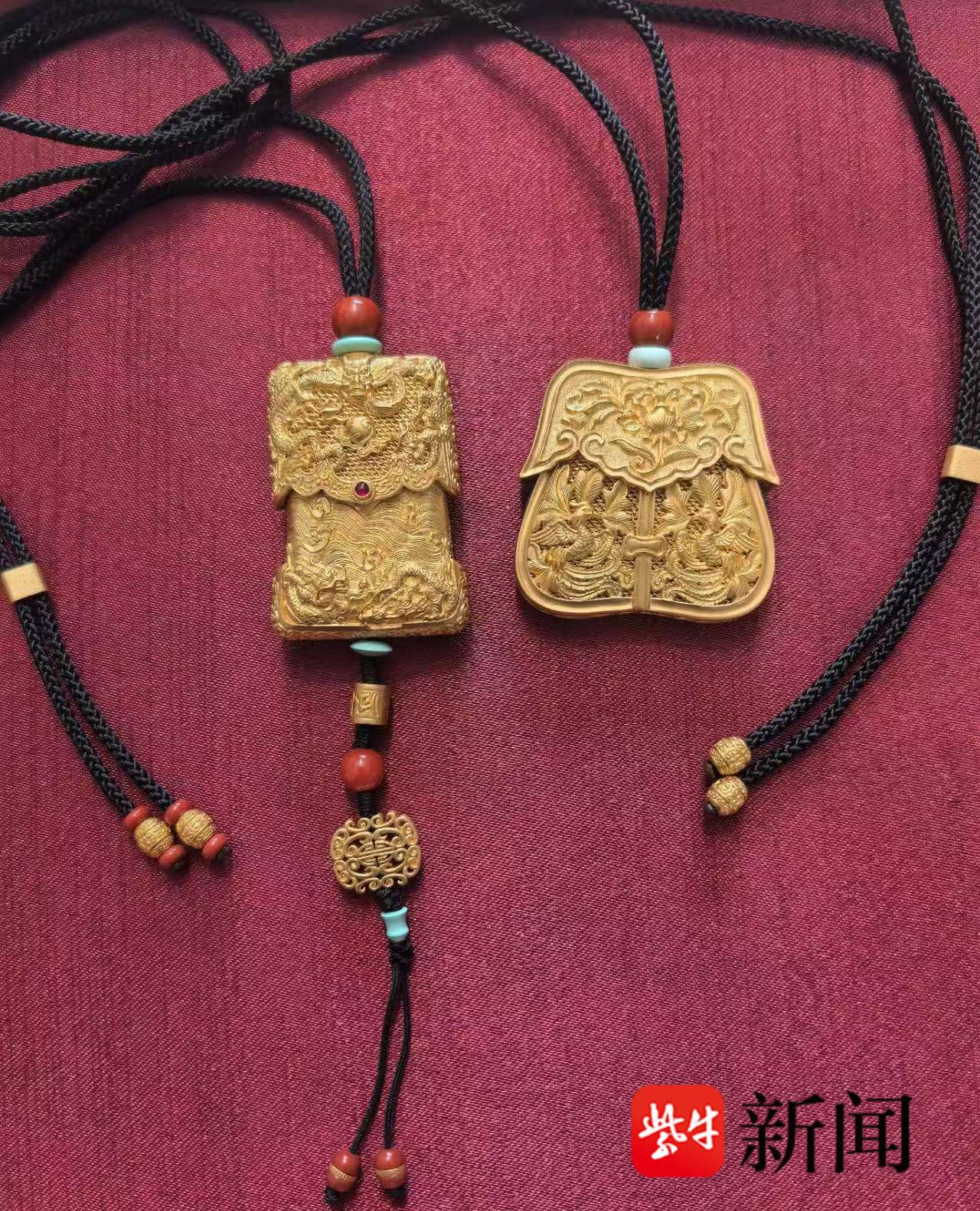 琳朝代表作“龙跃火镰”(左)与“游凤牡丹”(右),以极致手工技艺诠释古法黄金的当代美学,单克价远超国际金价