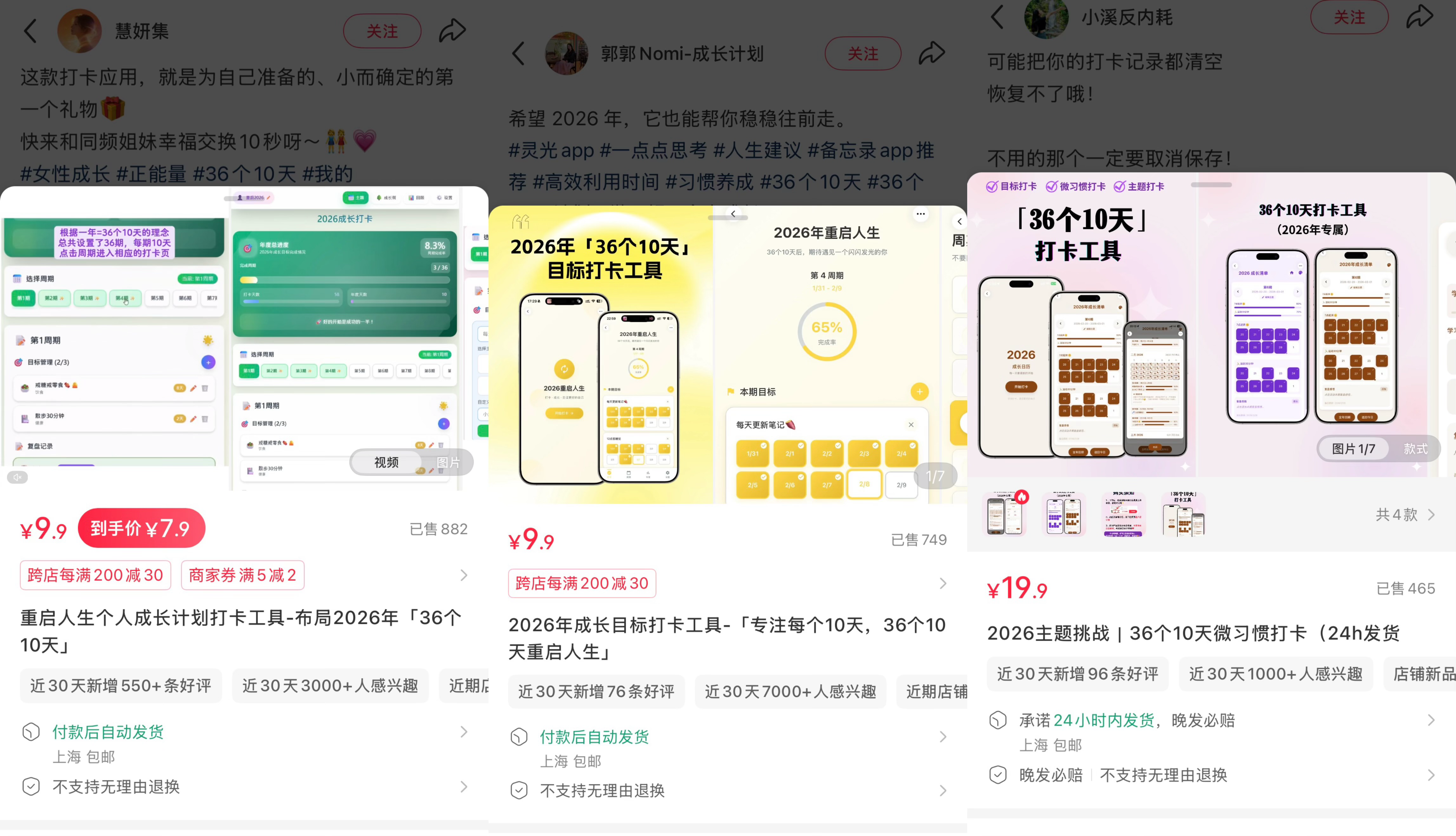 记者发现,有多位网友在社交平台分享并出售他们通过灵光App手搓的闪应用,单个小应用成交量从百单到千单。这些闪应用生成门槛非常低,网友通过自然语言和灵光App对话,0成本创作,不会写代码也能搓出一个可交互的小应用。因其制作便捷,不受赛道限制,被当下年轻人发展成了一门“生意”。譬如,有用户手搓了主题为“36个10天”的个人成长目标打卡小工具用来督促自己成长,随后将其在个人店铺上架,不仅累计获得了近千笔订单,还得到了大量好评,购买者评价“操作界面简单、没有乱七八糟广告”。据不完全统计,在某社交平台,用灵光手搓出来的个人成长主题的小应用已售出数千单。