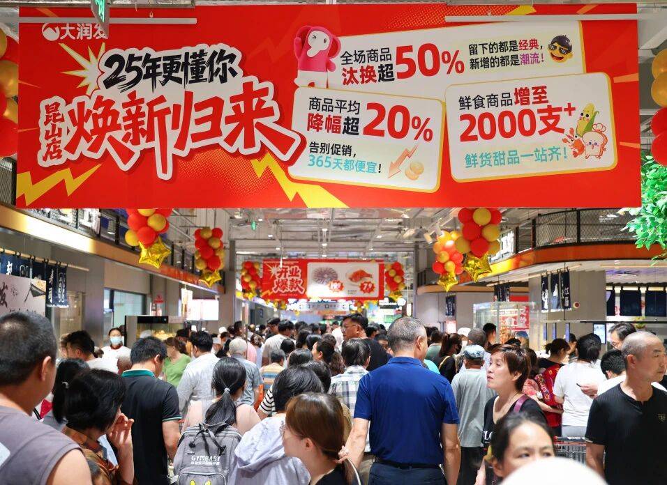 2025年是大润发发展史上极具转折意义的一年,随着德弘资本完成对高鑫零售的控股交割,这家在商超行业深耕二十余年、稳坐行业头把交椅的老牌企业,就此开启了“告别宏大叙事,回归零售本质”的全新发展周期。大润发刚刚晒出的一份报告显示,其以一场覆盖全国的门店调改,在2025年完成了对过往发展逻辑的系统性升级,其中最有代表性的是9月焕新开业的昆山店。这家曾蝉联全国销售冠军的门店,焕新开业单日销售额突破575万元,交易客数三万余人,刷新品牌历史纪录。
