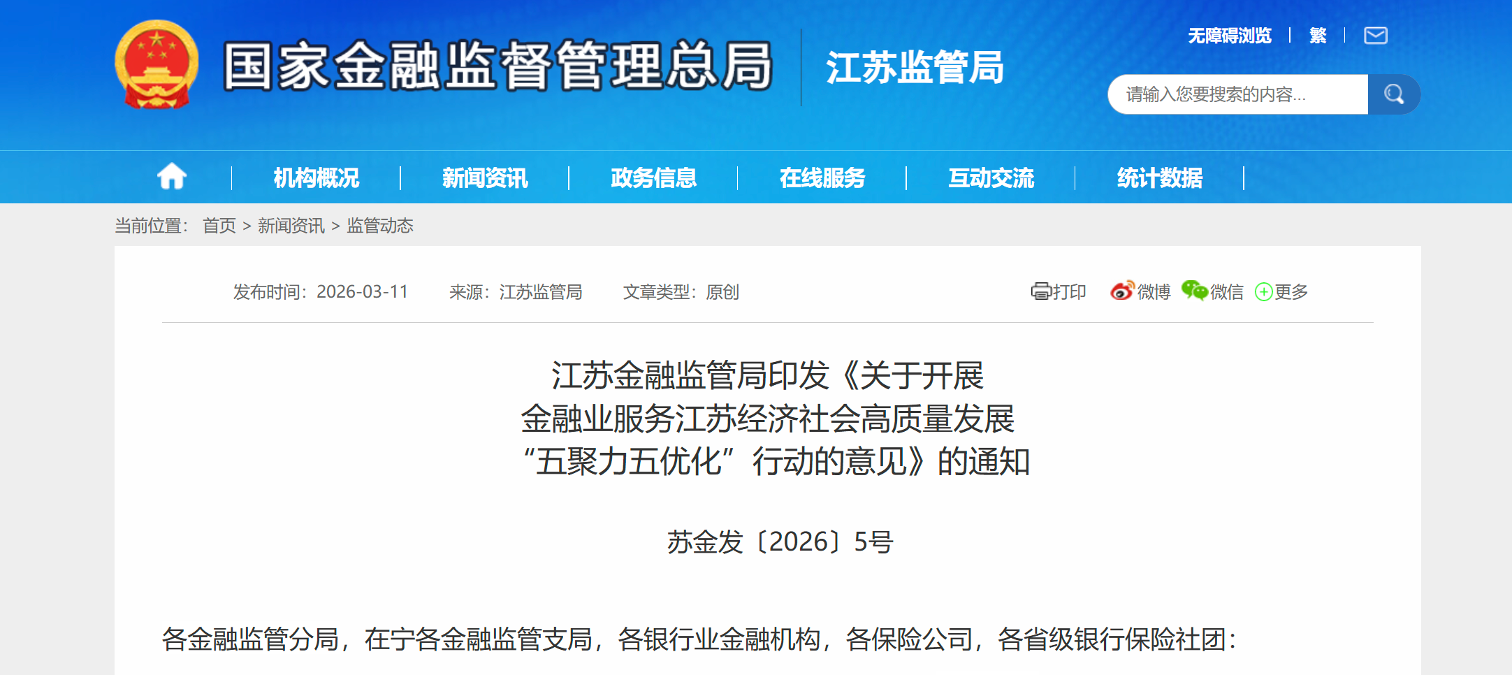 江苏金融监管局印发“五聚力五优化”行动意见,服务江苏经济社会高质量发展
