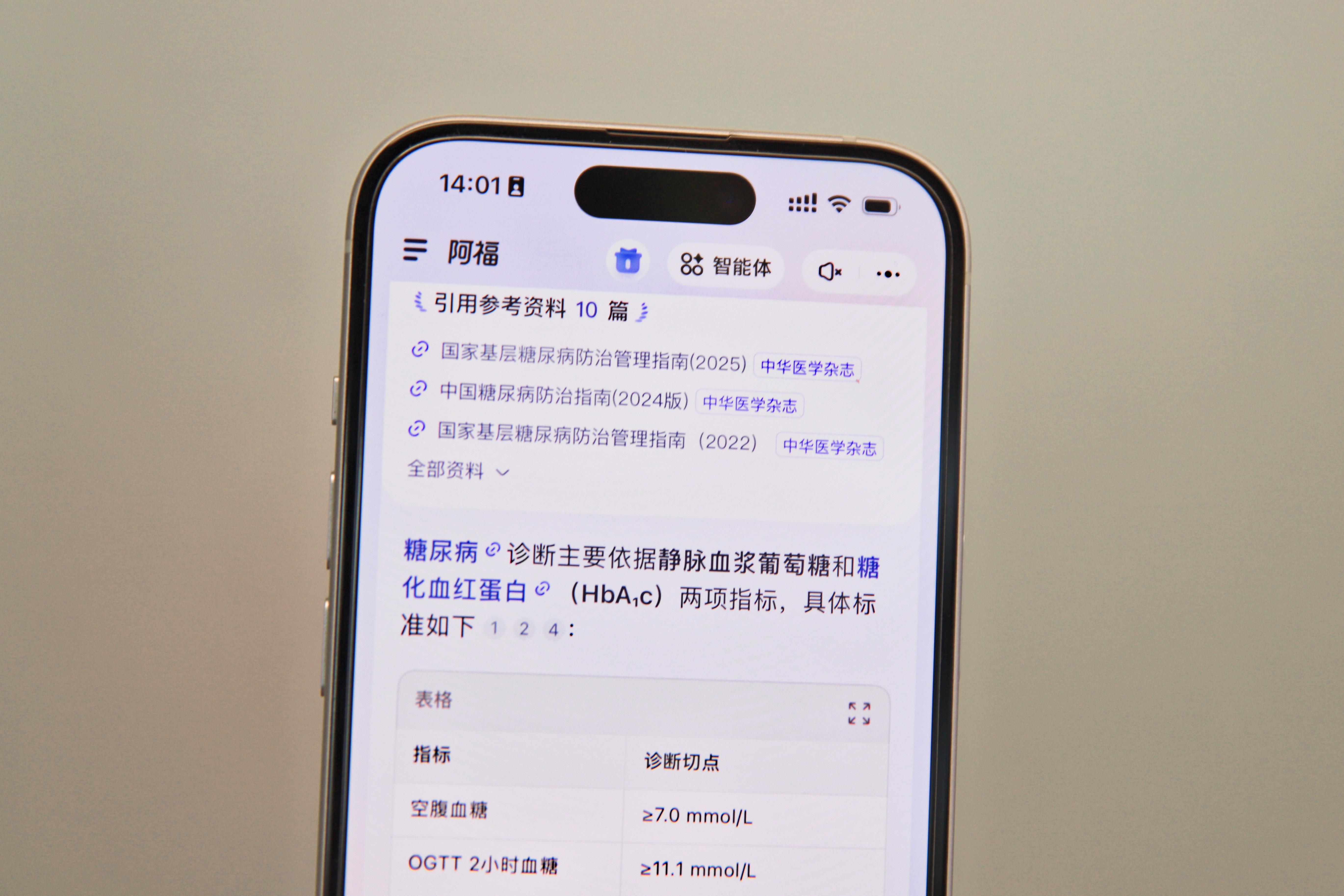 记者体验发现,用户在蚂蚁阿福App上咨询健康问题时,回答结果会明确标注来自中华医学会系列期刊的知识内容,点击还能查看核心内容摘要。