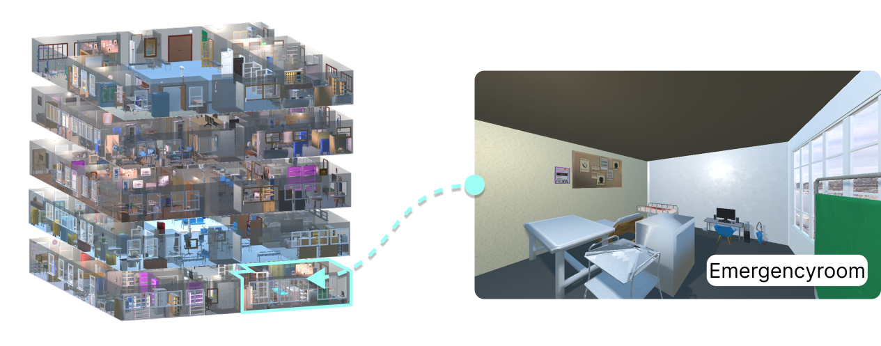 近年来,机器人感知、操作、导航能力快速提升,但场景基准严重滞后。真实扫描数据成本高、难编辑;现有合成环境多为单层布局,缺少楼梯、电梯、跨层连接等关键结构,无法支撑跨楼层、长时程复杂任务训练。