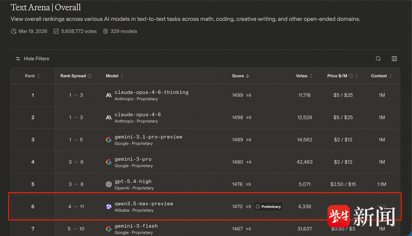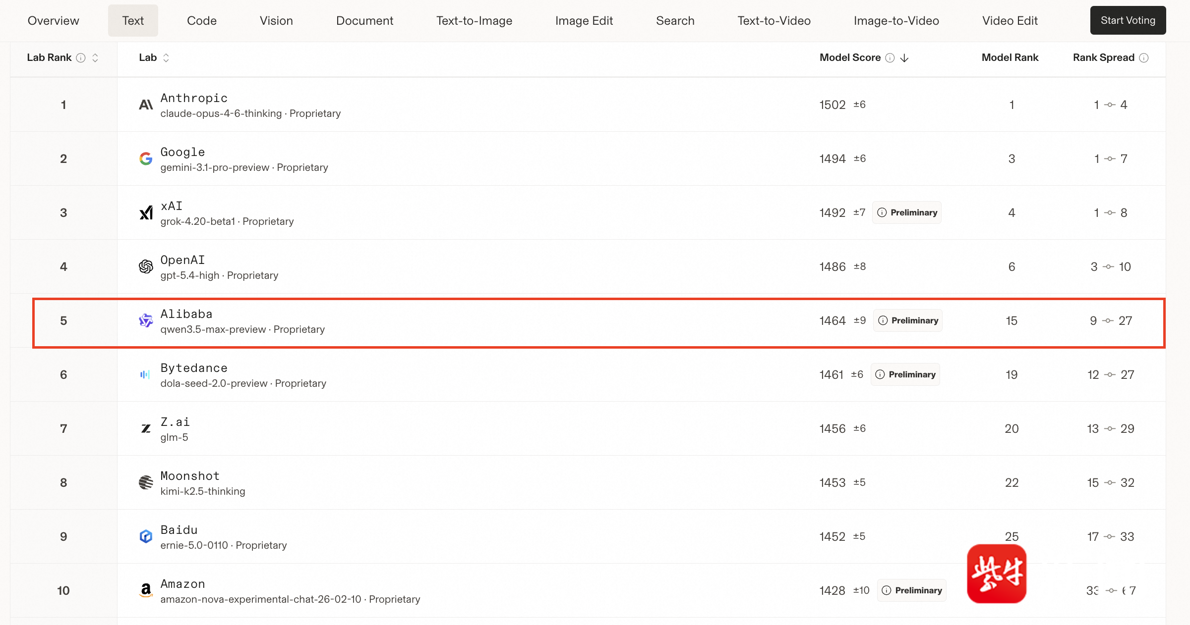凭借Qwen3.5-Max-Preview,阿里跻身全球前五大模型公司