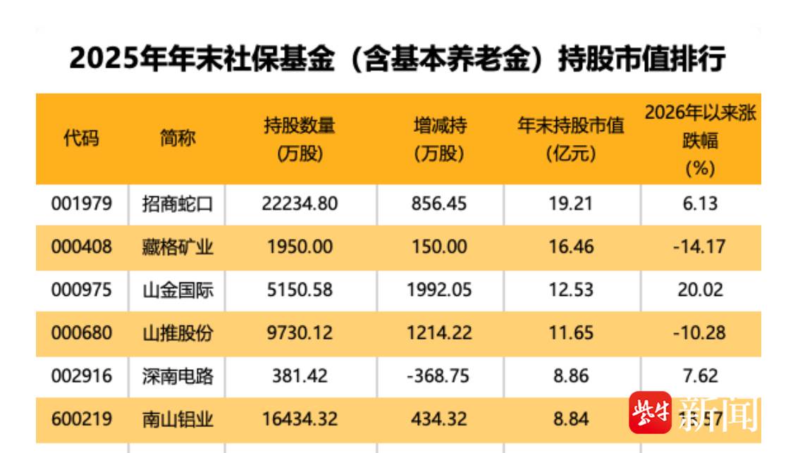 扬子晚报网3月21日讯(记者 薄云峰)随着A股上市公司2025年年报陆续披露,社保基金作为资本市场中兼具安全性与长期性的“压舱石”资金,其2025年四季度的持股动向逐渐浮出。