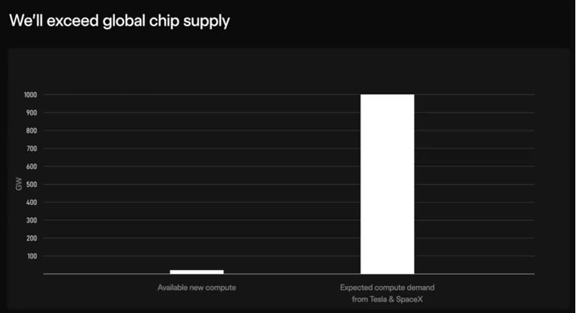 为何一定要下场造芯片?在马斯克看来,现有全球芯片产能根本无法匹配他未来的需求。