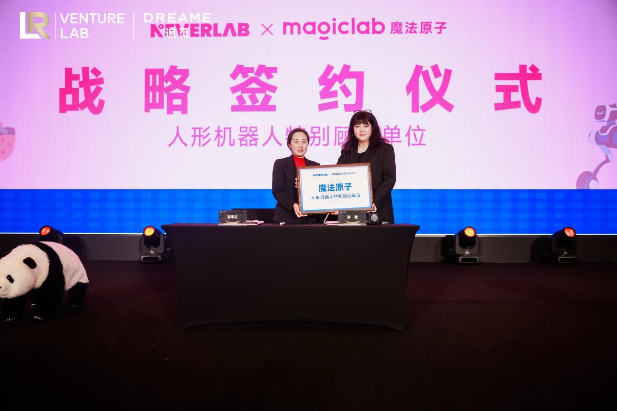 峰会上,NEVERLAB 与全球领先的具身智能公司魔法原子达成战略合作,NEVERLAB 总裁张雯、魔法原子业务副总裁张军花作为双方代表出席并完成签约,双方将围绕AI 玩具产品开发、线下场景智能体验升级展开深度合作,共同打造 “科技 + 情绪 + IP” 的全新消费体验。