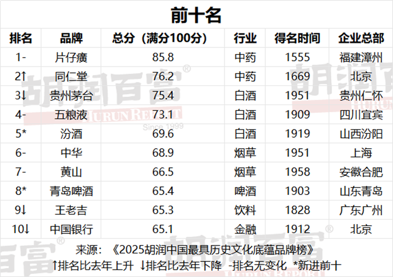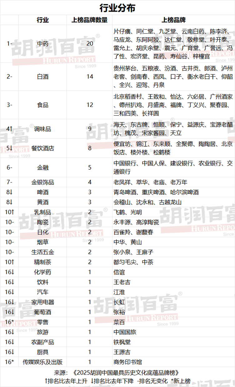 据《2025胡润中国最具历史文化底蕴品牌榜》制表