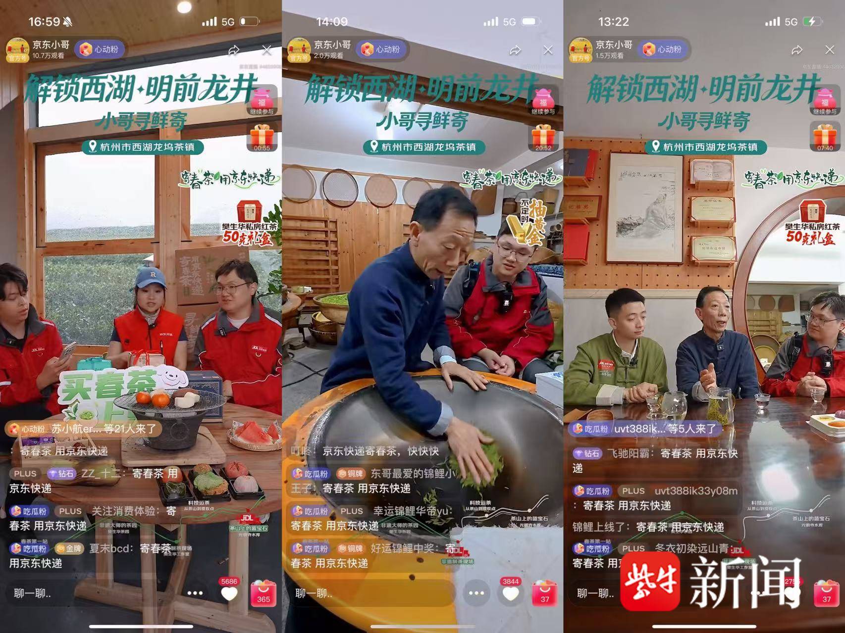 物流提速的同时,产地直播也在发力。今年,京东快递持续走进全国各大春茶主产区开展溯源直播。在西湖龙井产区,京东快递携手国家级非物质文化遗产西湖龙井制作技艺传承人樊生华,开启专场直播。直播中,樊生华现场展示手工炒茶的精湛技艺,详细讲解西湖龙井的品质鉴别技巧;工作人员则同步拆解春茶全流程,让消费者直观看到春茶的“诞生到送达”之旅。
