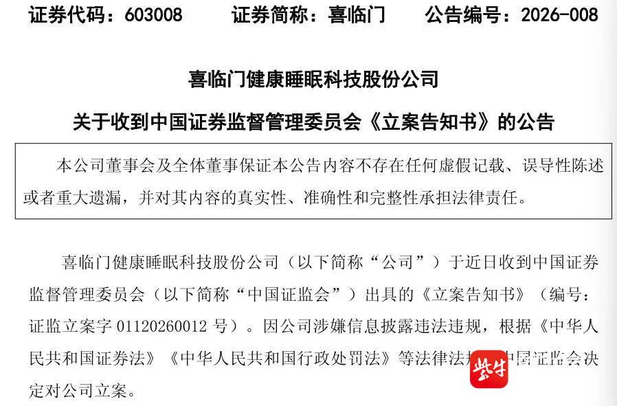喜临门同时披露的另一份公告显示,因公司涉嫌信息披露违法违规,证监会决定对公司立案。喜临门表示,截至目前,公司生产经营活动正常,公司董事和高级管理人员目前均正常履职,上述事项不会对公司生产经营产生重大影响。
