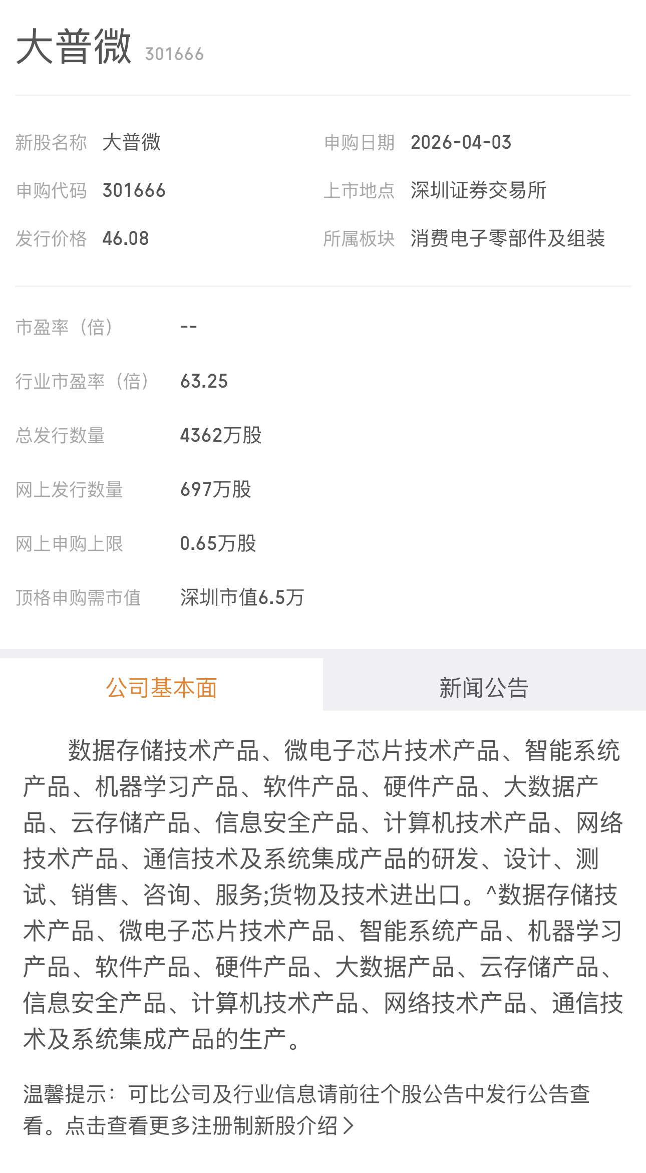 今天有一只新股申购。