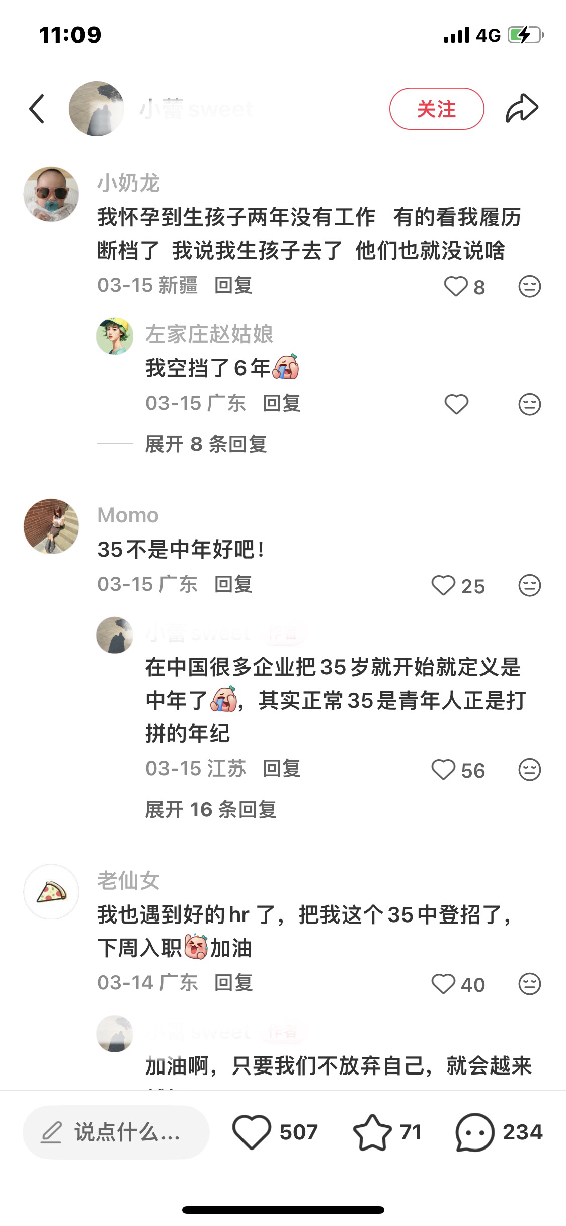 不少网友在帖下也分享了自己求职时遇到的暖心经历。一位网友说:“我36岁去面试,看到人事不是小年轻,就觉得稳了。后来老板面试时说‘我们就是让做妈妈的女性也有时间陪伴娃,不提倡加班’,那一刻觉得这是个有温度的公司。”