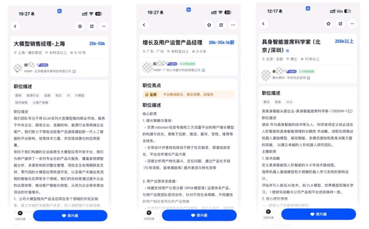 从岗位类型来看,“隐形大厂”的招聘需求并未局限于技术类岗位,非技术岗位的机会也在持续打开。产品、销售、行政等岗位,同样具备较强的薪酬吸引力。比如,智谱的“大模型销售经理”岗位最高月薪能达到5万元,小马智行的“增长及用户运营产品经理”岗位最高月薪达3.5万元。