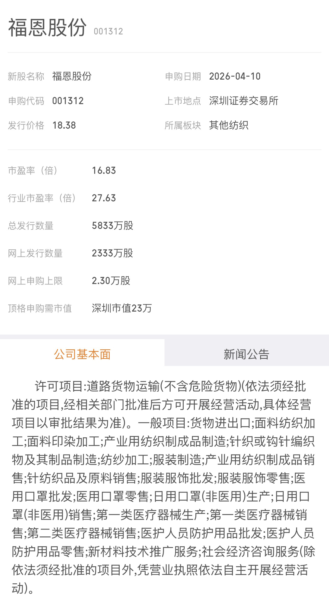今天有一只新股申购。