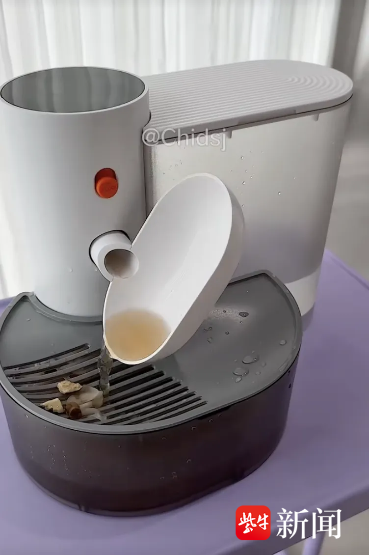 在视频里,达人并没有解说饮水机的原理,而是做了一个极具视觉冲击力的实验:往水箱里滴入墨水。在传统循环饮水机中,墨水瞬间染黑了整盆水;而在 PetGravity 的单向流设计下,污水被迅速排走,猫咪喝到的永远是清水。
