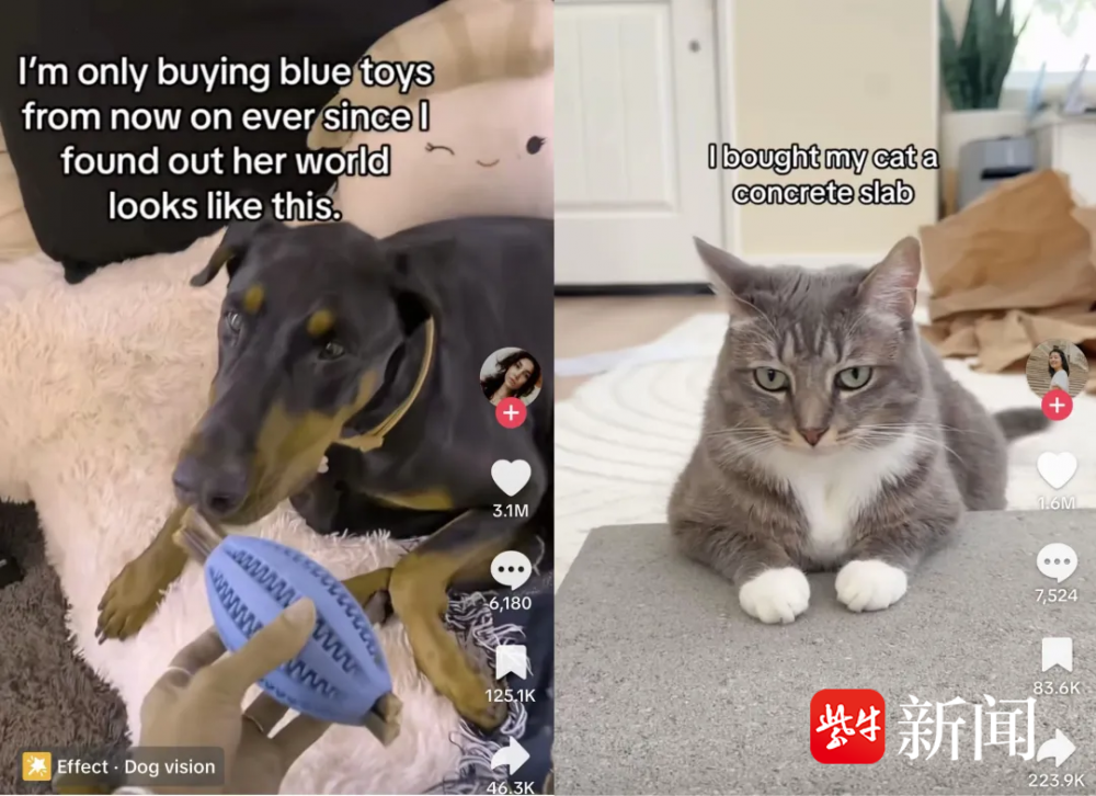 TikTok上兴起给狗买蓝色玩具、给猫买混凝土风潮