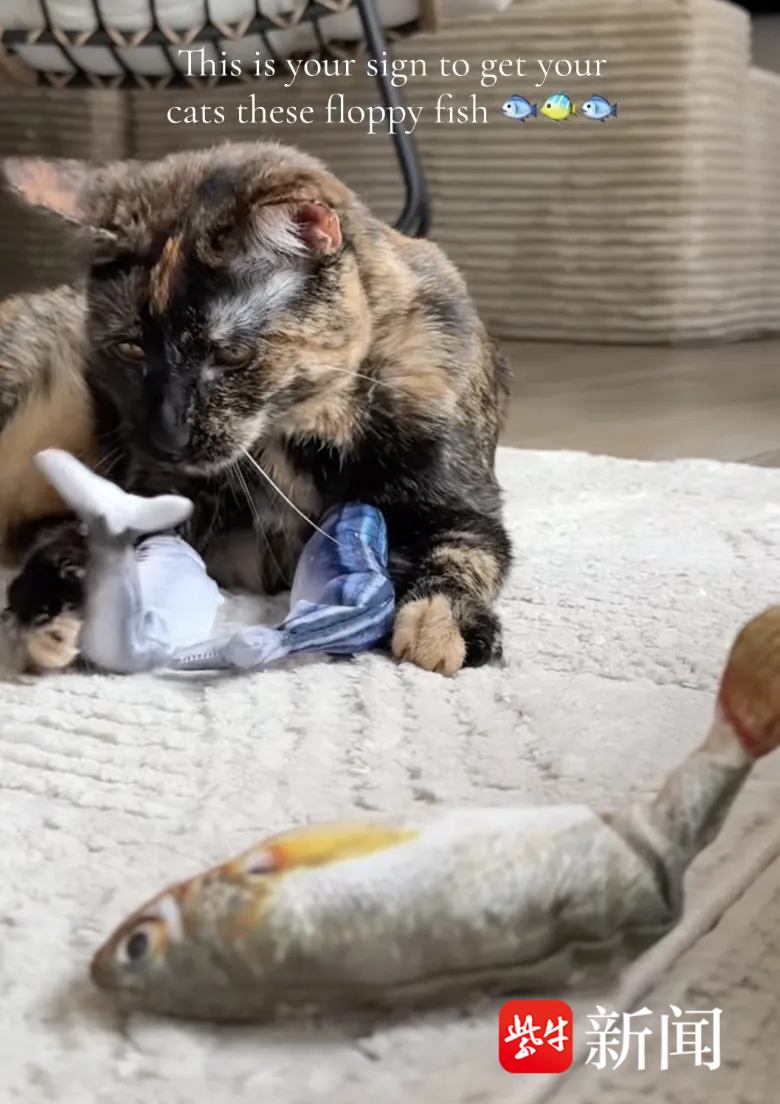 海外网友分享宠物猫玩 PetGravity 生产的 “ 跳跳鱼 ” 玩具