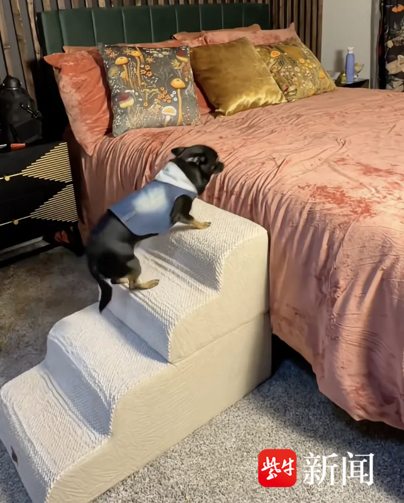 TikTok 美国用户展示,宠物狗使用 Made4Pets 坡面宠物楼梯