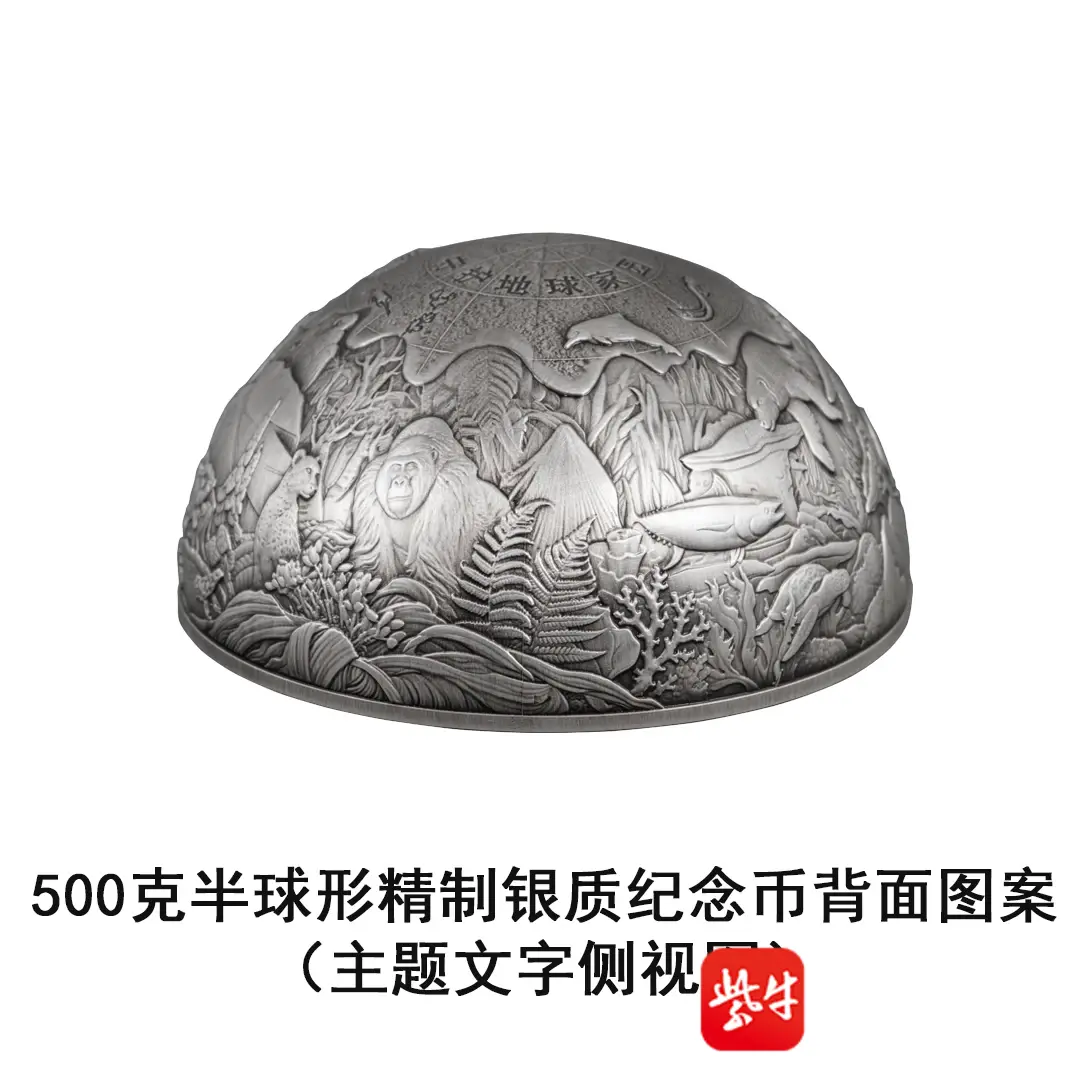 在工艺与设计上,500 克半球形银质纪念币打破传统圆形铸币形制,采用特殊半球造型搭配高浮雕工艺,融汇地球经纬、珍稀物种、古生物化石等多元元素,视觉辨识度极强,特殊异形工艺大幅提升了铸造难度,工艺稀缺性显著。
