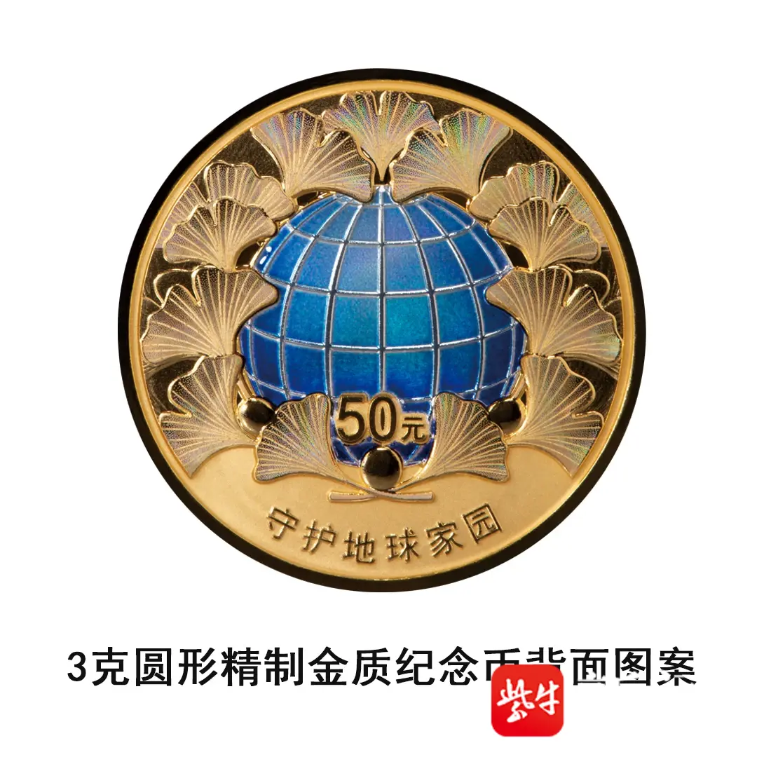 3克圆形金质纪念币背面图案为地球经纬线、银杏叶等组合设计,并刊“守护地球家园”字样及面额。3克圆形金质纪念币为精制币,含纯金3克,直径18毫米,面额50元,成色99.9%,最大发行量10000枚。