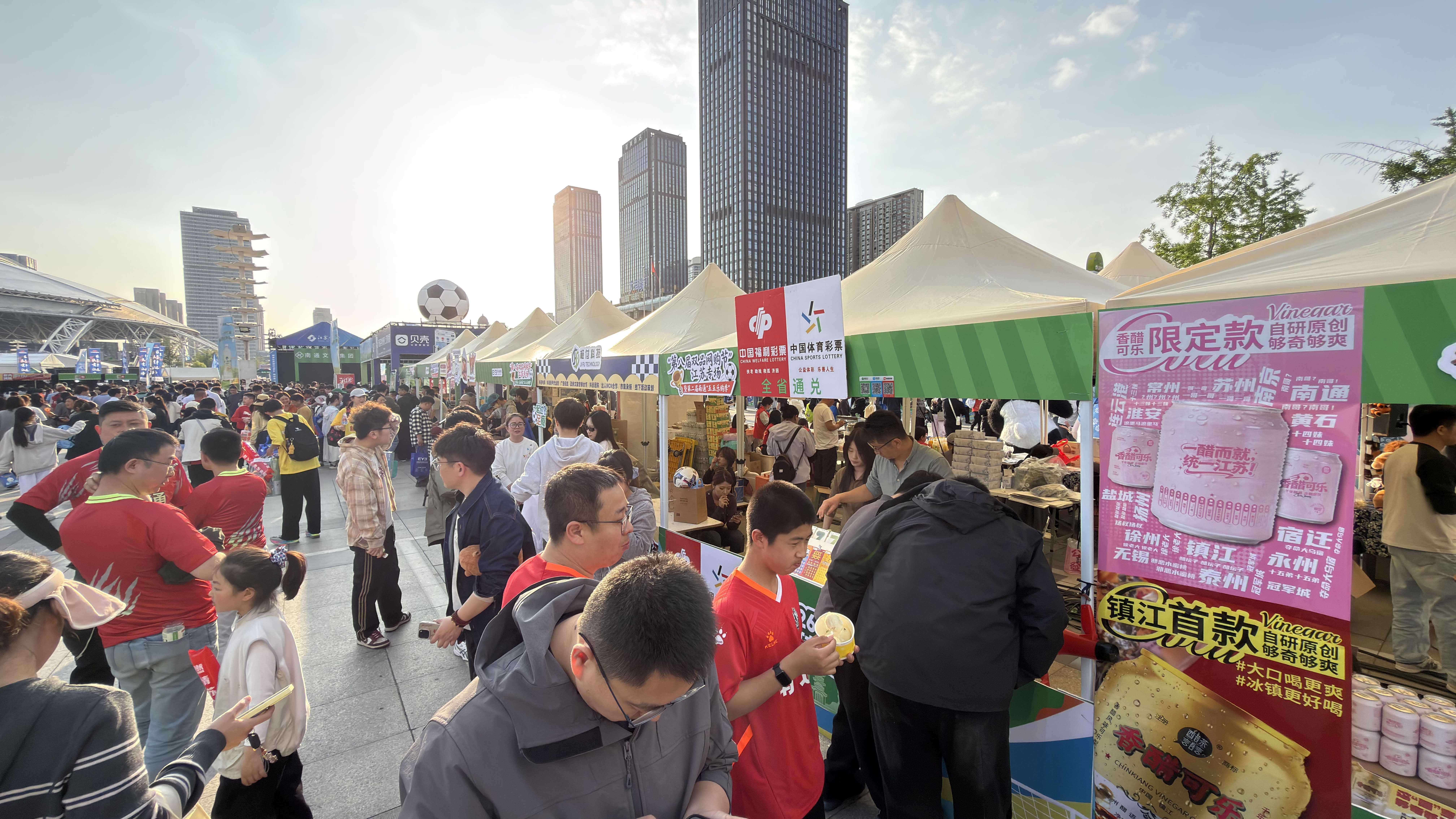 活动期间,全省13个设区市将同步推出各具特色的配套活动,共同点燃全省消费热情。本次活动现场还精心组织了主题市集,融合了人工智能、苏品苏货、即时零售、以旧换新、“苏超”文创、特色美食等多元板块。其中,人工智能专区尤为引人注目,人形机器人、割草机器人、外骨骼机器人、AI智慧光助学机器人、照片生成手办等创新产品,让市民直观感受到科技赋能未来生活的无限可能,成为现场人气焦点。
