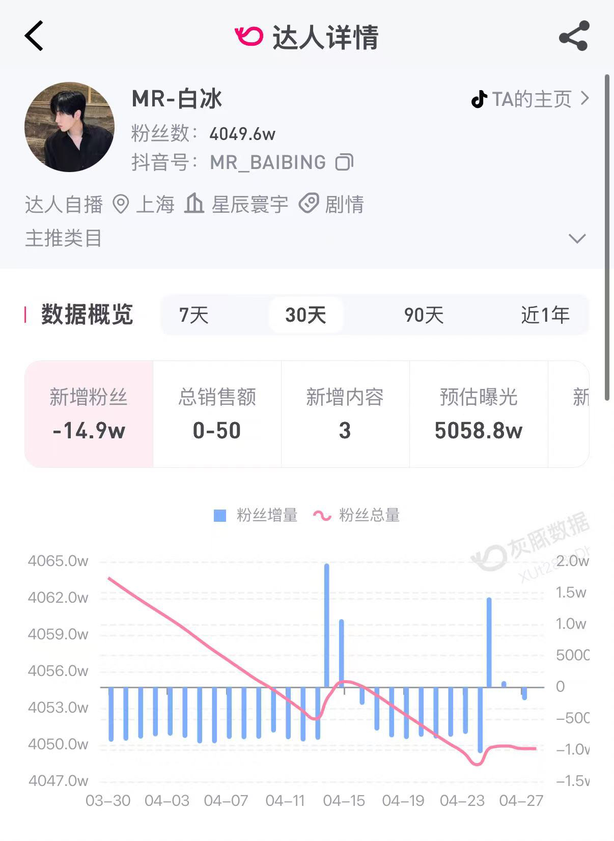 然而,税务丑闻的曝光迅速反噬流量。第三方数据显示,尽管白冰全平台粉丝超4049万,但在近30天内已掉粉14.9万。尽管其视频报价仍维持在20秒内66万元、长视频132万元的天价水平,但在国家重拳整治“饭圈”乱象与偷逃税行为的背景下,其商业价值正面临巨大不确定性。