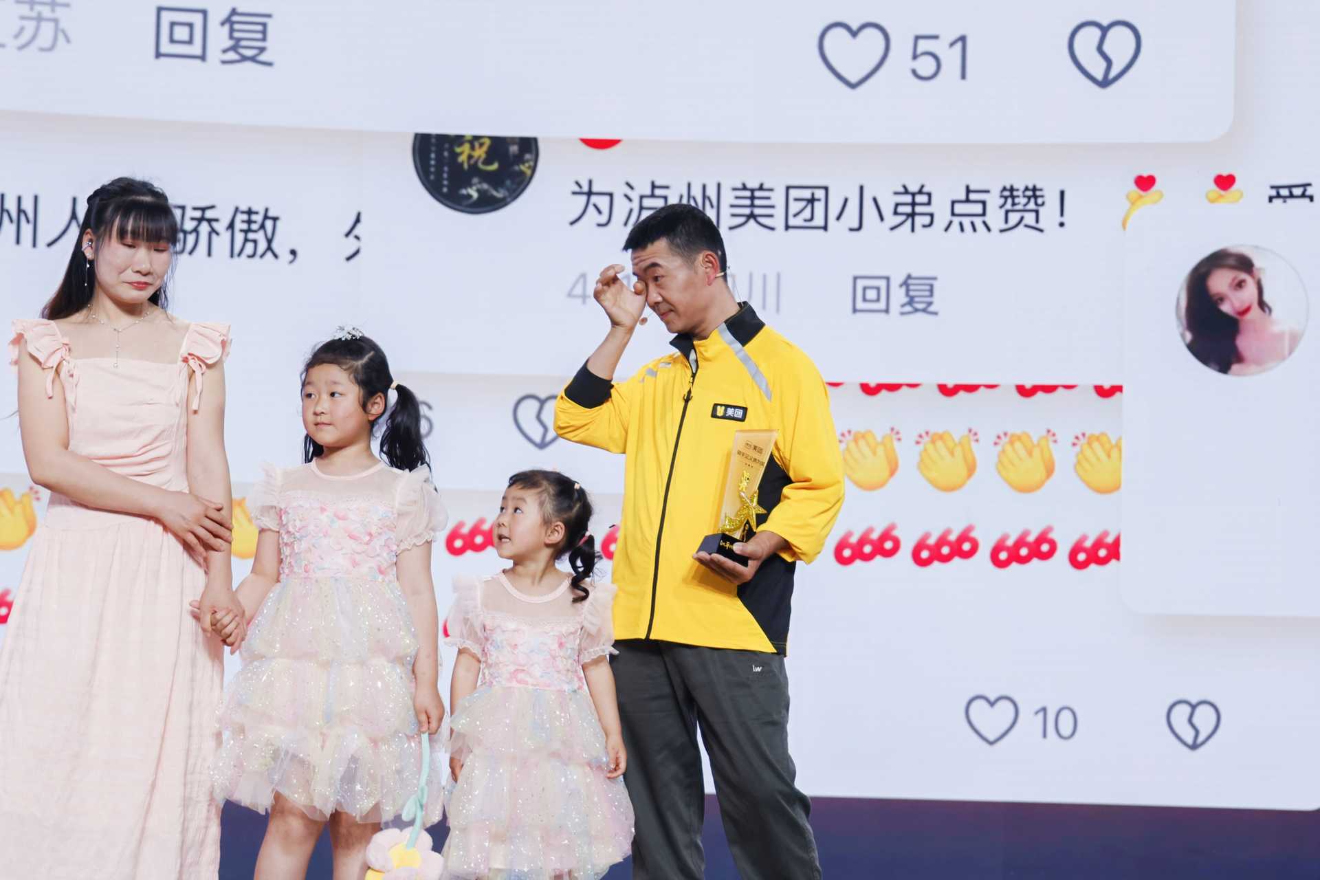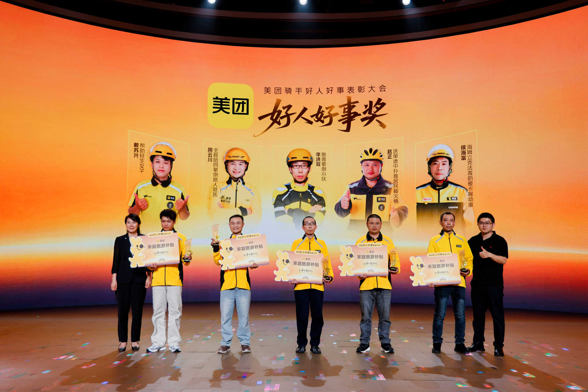 现场,来自上海、江苏、安徽、福建等全国多地的10位骑手分别获得“见义勇为”、“好人好事”奖项,美团为受表彰的骑手提供家庭旅游补贴,以鼓励其善举。