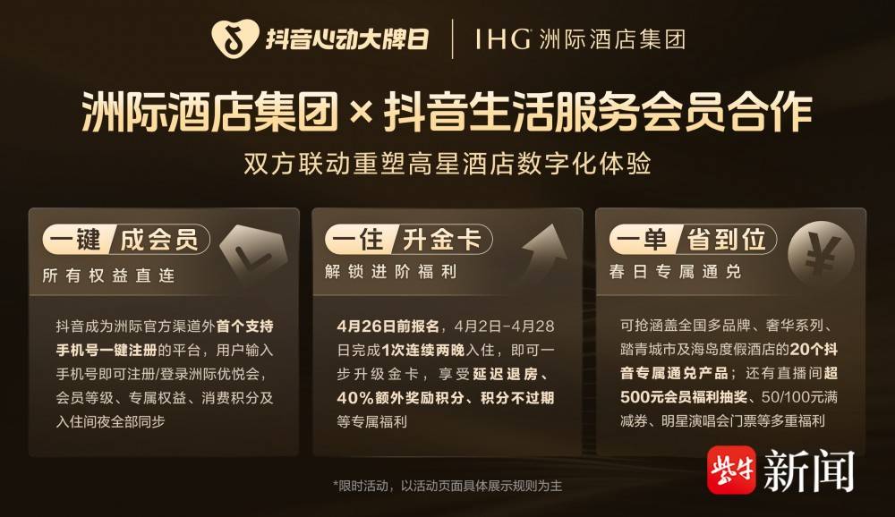 洲际是全球领先的国际酒店管理集团,稳居抖音生活服务酒店板块头部商家地位。此次合作不仅共创春季营销盛宴,更探索出高星酒店会员拉新、激活、留存的数字化新范式。抖音生活服务凭借技术实力、流量生态与全域经营能力,从单一流量渠道升级为全链路会员运营平台,有效解决行业 “拉新难、运营散、体验断” 痛点。