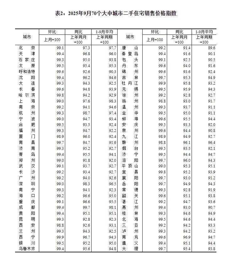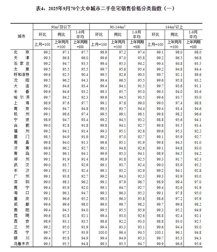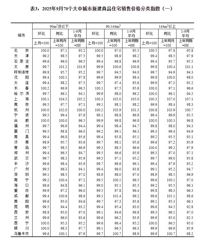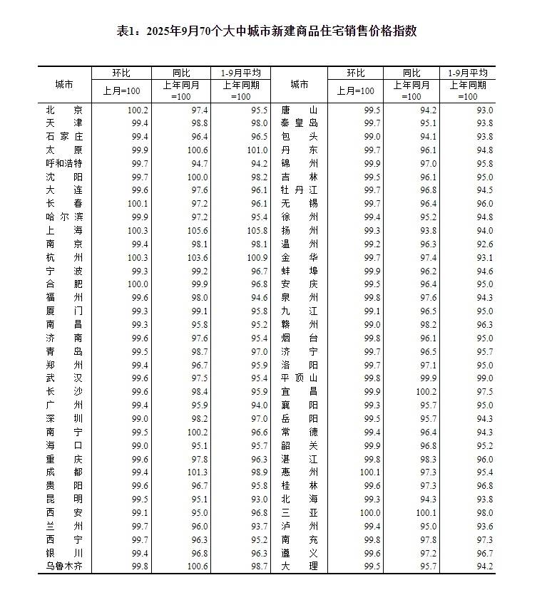 国家统计局城市司首席统计师王中华解读2025年9月份商品住宅销售价格变动情况统计数据。