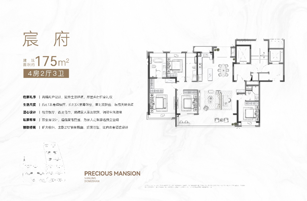 嘉和华府175㎡户型,集核芯地段、顶尖产品、稀缺数量、国企保障于一身,无疑是江宁改善市场中一面鲜明的旗帜。
