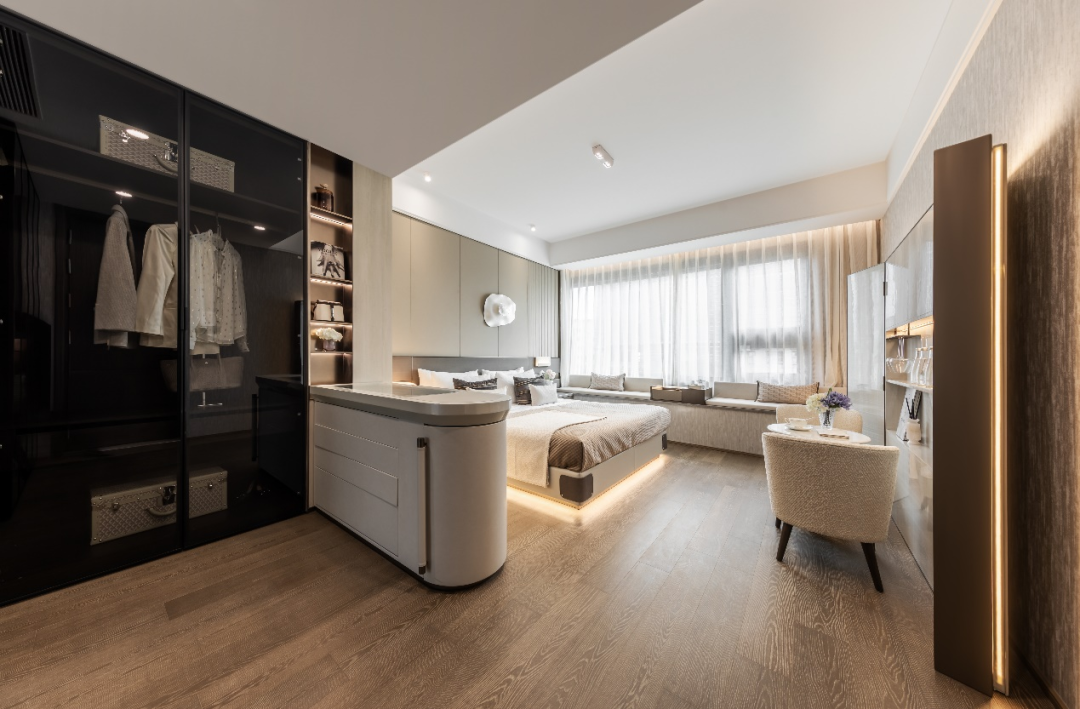 主卧采用豪华套房设计,配备270度转角飘窗,尊崇感与视野通透感并存。