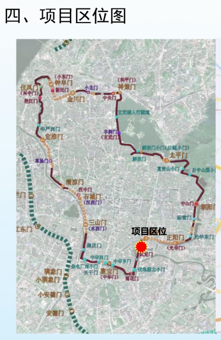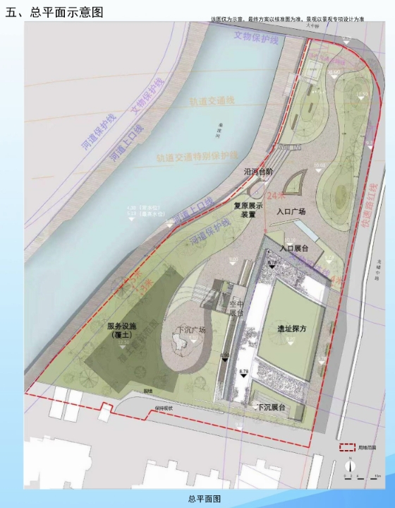 记者了解到,南京城墙通济门遗址文物保护与展示工程位于全国文保单位南京城墙的保护范围,以及南京市级文保单位大中桥的建设控制地带。东临通济门隧道,西临内秦淮河,南临东城水岸小区,北临大中桥,其中城墙包括城墙遗址。项目用地面积6448平方米,规划用地性质为G3广场用地,绿地率为35%。