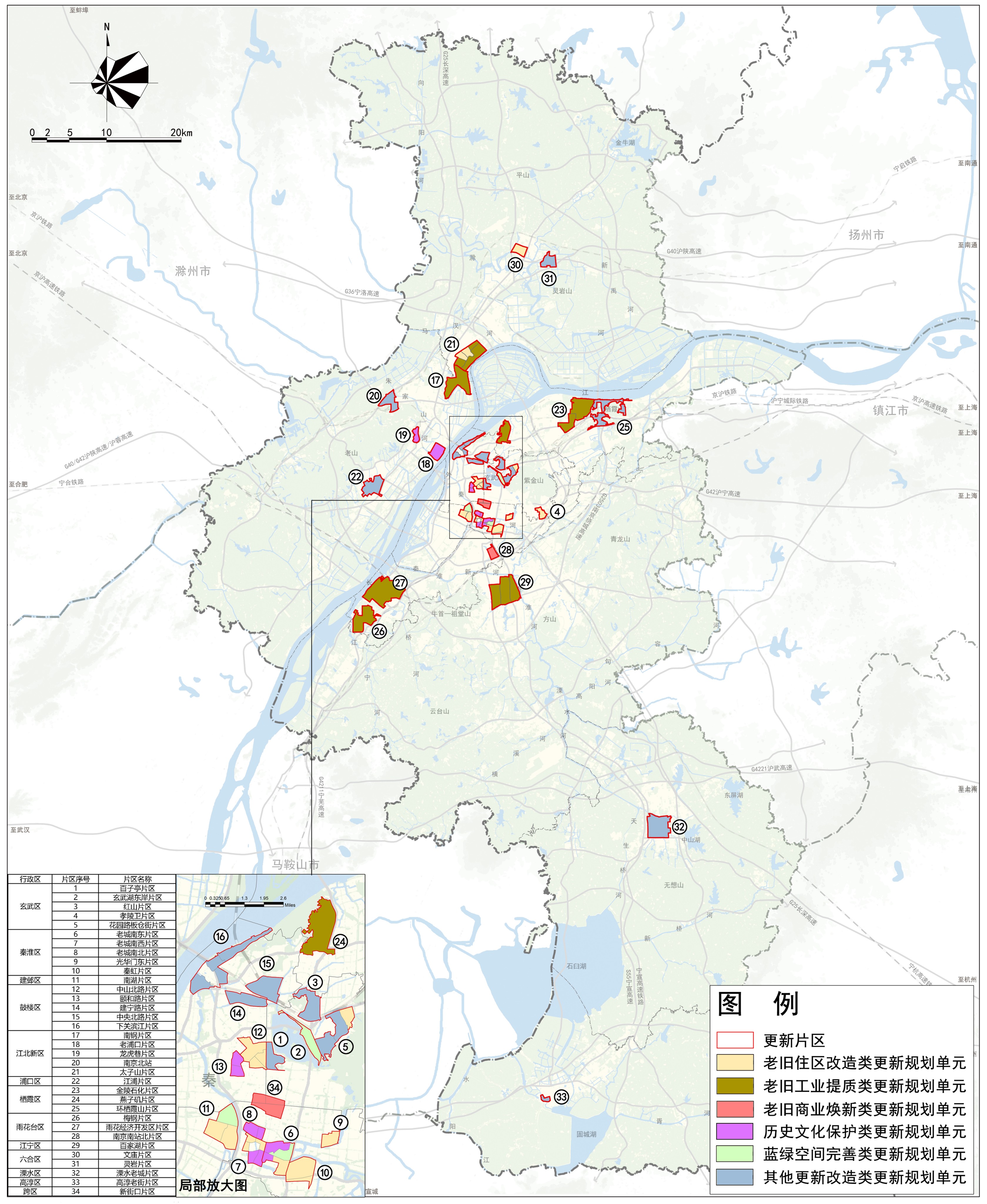 扬子晚报/紫牛新闻记者了解到,《南京市城市更新专项规划》共明确更新片区34个,全市划示更新规划单元62个,分为六类,其中:老旧住区改造类17个、老旧工业提质类12个、老旧商业焕新类4个、历史文化保护类10个、蓝绿空间完善类3个、其他更新改造类16个。
